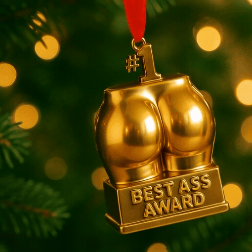 These two gold ornaments feature bold, playful designs that instantly make the holiday atmosphere more fun — a little cheeky, a little unexpected, and absolutely unforgettable.